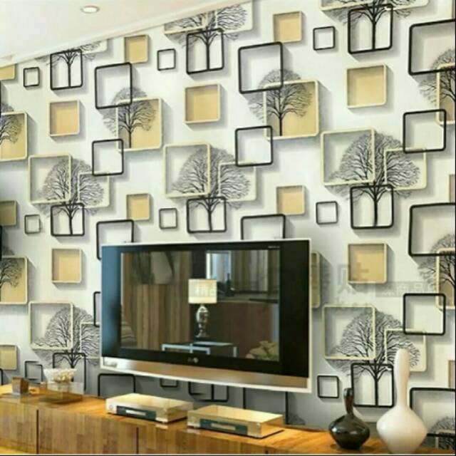 Wallpaper Stiker Dinding Motif Pohon Dan Kotak Coklat 3d Sticker