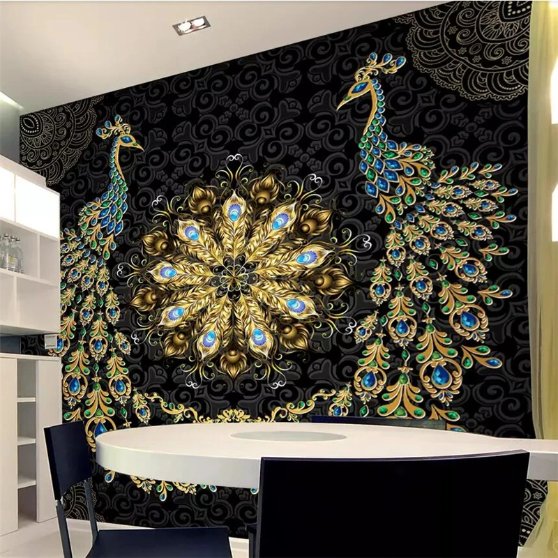 Beibehang Wallpaper Kustom 3d Foto Mural Mewah Hitam Gold Gem