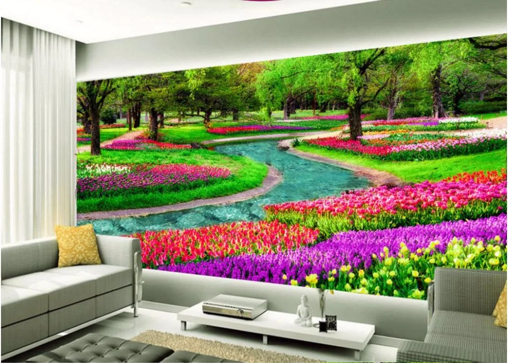 Kustom Mural Foto 3d Wallpaper Taman Pemandangan Gambar Dekorasi