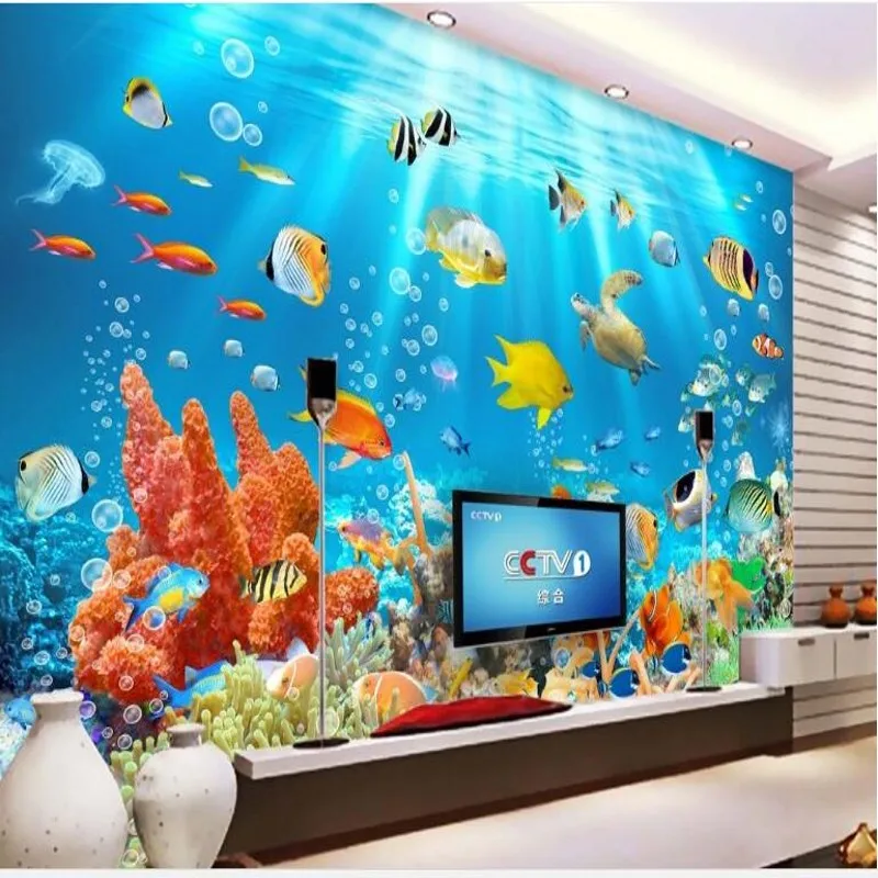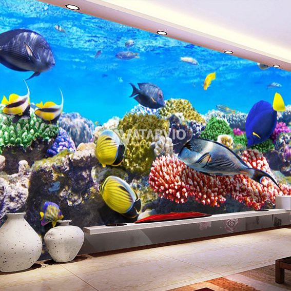 Wallpaper Wall Paper Dinding Custom 3d 3 D 3 Dimensi Ikan Fish Sea