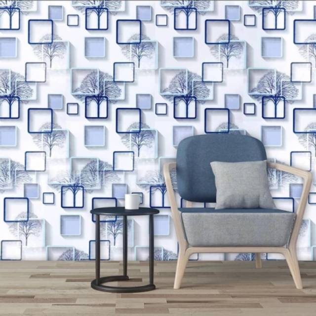 Hot Sale Wallpaper Sticker Dinding 3d Motif Pohon Kotak Biru