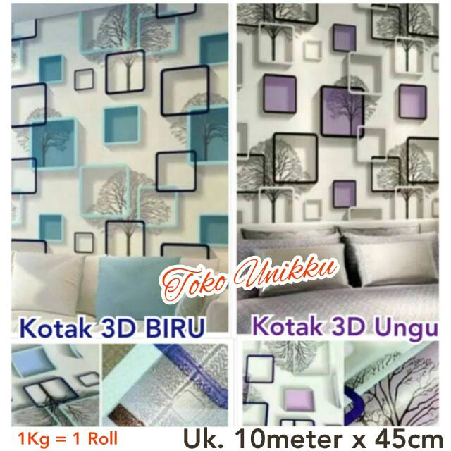 Wallpaper Dinding Sticker 45 Cm X 10 M Kotak 3d Biru Ungu Shopee