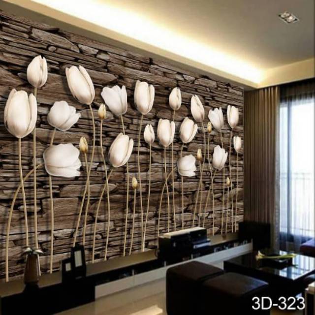 Wallpaper Custom 3d Bunga Tulip Motif Batu Alam Shopee Indonesia