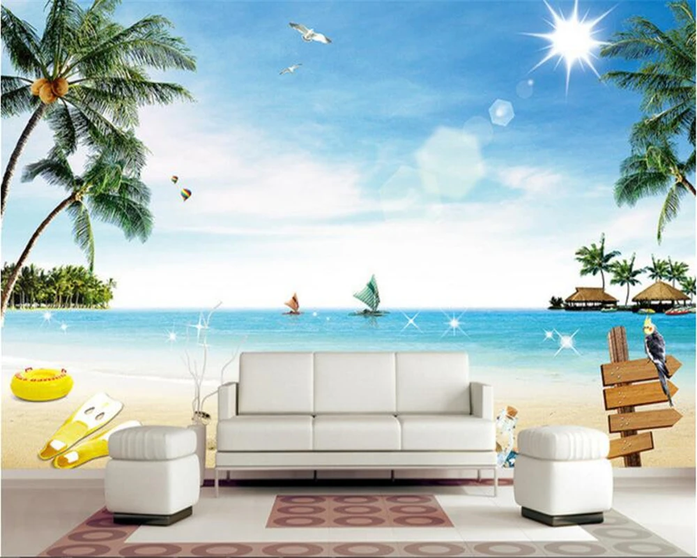 Beibehang Wallpaper Dinding 3d Pantai Pohon Kelapa Pantai Jejak